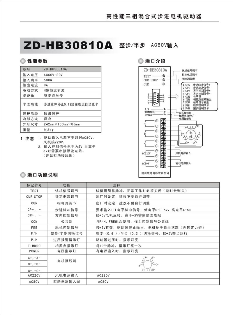 ZD-HB30810A(三相混合式步進(jìn)驅(qū)動器)