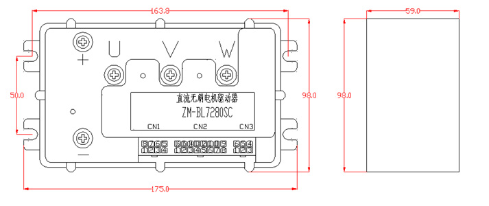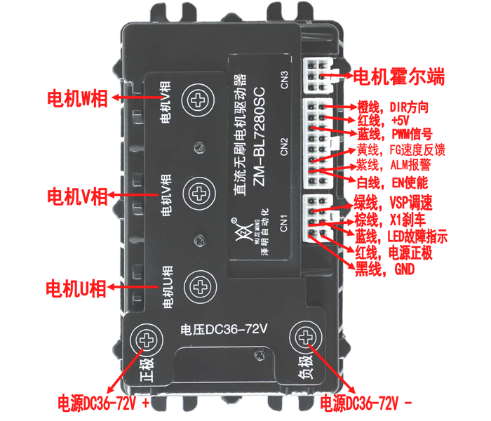 產(chǎn)品概述 ZM-BL7280SC直流無刷電機驅(qū)動器針對中功率無刷電機傳動領域的高科技產(chǎn)品。本產(chǎn)品使用大規(guī)模的集成電路取代原有硬件設計,具有更高的抗干擾性及快速響應能力。本產(chǎn)品適合驅(qū)動峰值電流在80A以下,電源電壓在DC32V~91V以內(nèi)(面板標稱DC36V~72V)的任意一款低壓正弦波有霍爾三相直流無刷電機,并具有大電流工作時溫度低的特點。產(chǎn)品應用于針織設備、醫(yī)療設備、食品包裝機械、電動工具等一系列的電氣自動化控制領域。