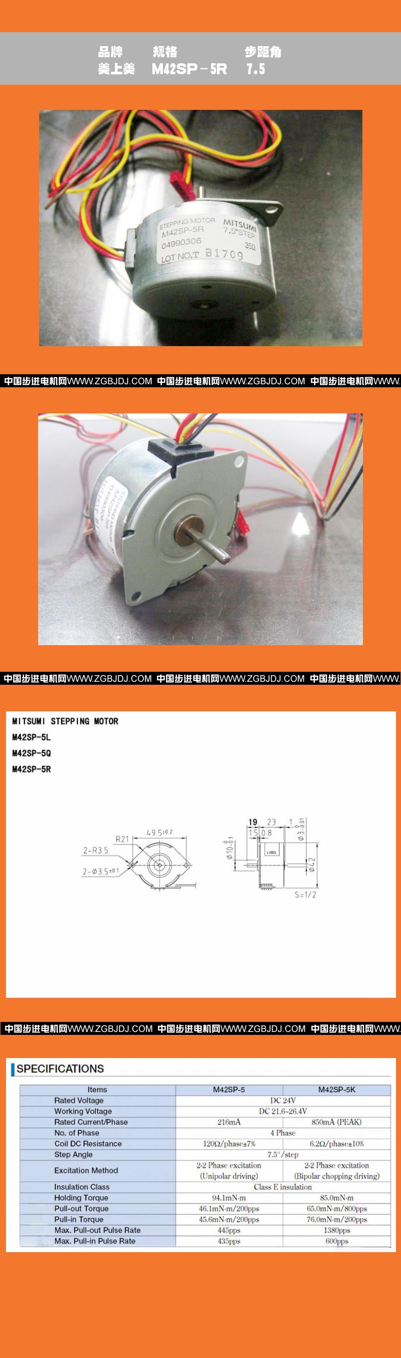 美上美品牌M42SP-5R 4相步進電機(42電機)