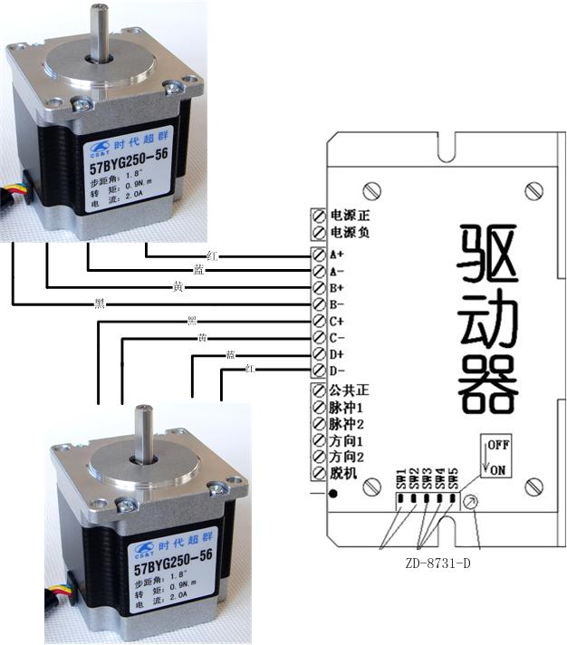 例如:可以驅(qū)動兩個的57電機的zd-8731-d驅(qū)動器,不但擁有四種細分可調(diào),電流線性可調(diào)等特點,還具有短路保護功能,可避免使用者不慎將電機線相碰導致燒毀驅(qū)動器的情況!