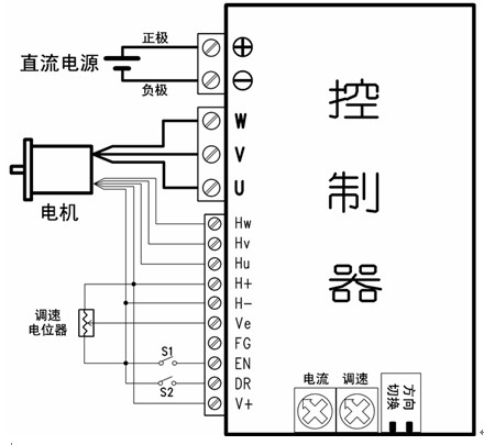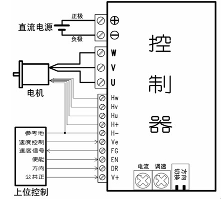 如需要用電位器調(diào)速,需斷開(kāi)上位控制與控制器之間的“速度控制”和“參考地”連線。