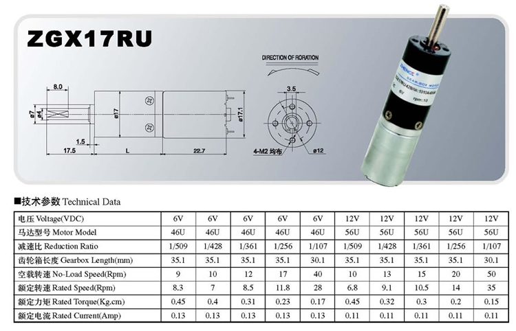ZGX17RU直流有刷行星減速電機