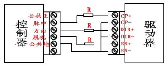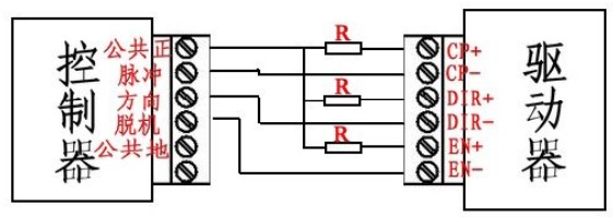 驅動器與控制器、電機、電源的接線,以共陽接法為例: