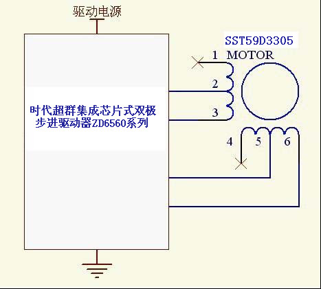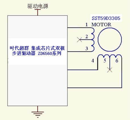 與雙極性驅(qū)動(dòng)器連接。圖中的中心抽頭2和5空著不接,只接兩端引出線(xiàn)。實(shí)際就是將每組的兩個(gè)相線(xiàn)圈串聯(lián)起來(lái)使用,電機(jī)堵轉(zhuǎn)矩大和效率高些,但是高速性能差。低速大力矩應(yīng)用優(yōu)先考慮的接法。不過(guò)要注意實(shí)際工作時(shí)的****電流要小于額定電流,大概是0.7倍左右。例如STP59D3305的額定電流是4.2A,按圖中的接法實(shí)際工作電流應(yīng)該設(shè)定在2.94A左右。