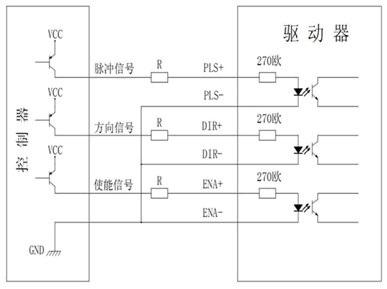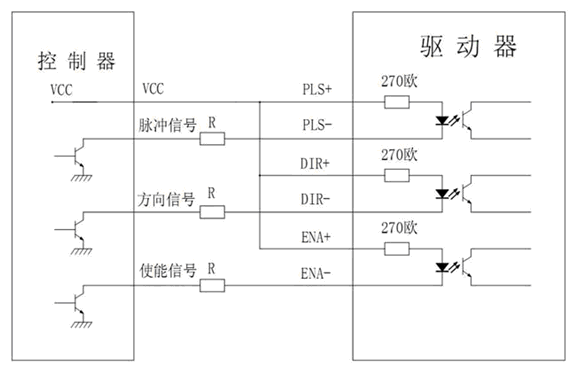 上位機的控制信號可以高電平有效,也可以低電平有效。當高有效時,把所有控制信號的負端連在一起作為信號地,低有效時,把所有控制信號的正端連在一起作為信號公共端。現(xiàn)在以集電極開路和PNP輸出為例,接口電路示意圖如下: