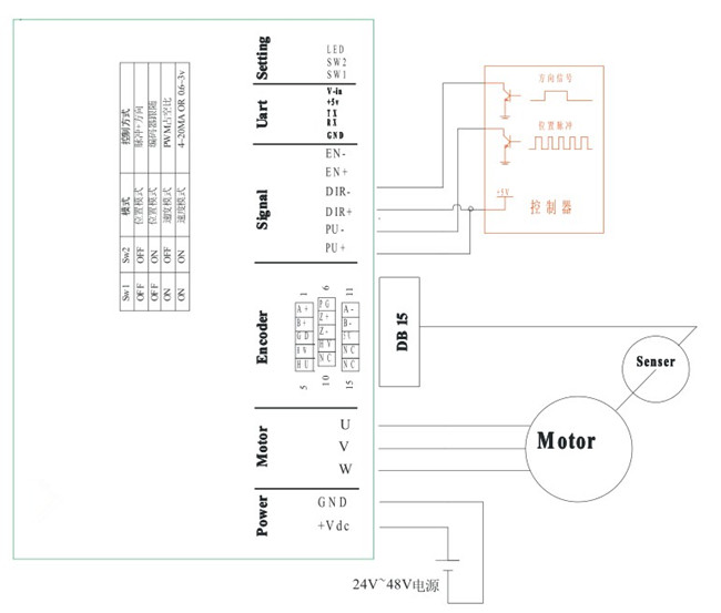 DM-044A交流伺服電機驅(qū)動器脈沖模式控制接線圖: