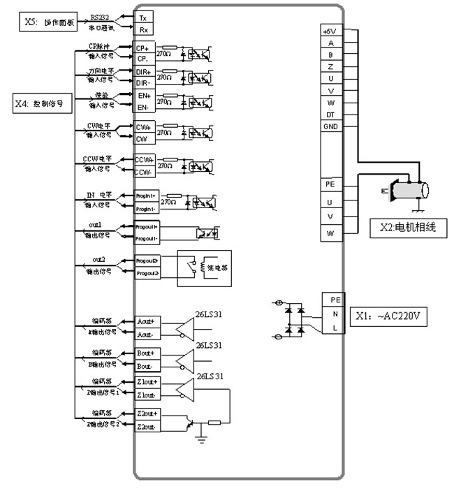 (請(qǐng)讓文檔編輯人員將X5:操作面板改為X3:操作面板;將X4:控制信號(hào)改為X5:控制信號(hào);另外在電機(jī)處加上X4:編碼器接線)