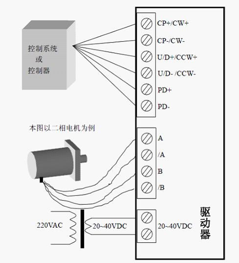 (3)脫機(jī)信號(hào)PD:此信號(hào)為選用信號(hào),并不是必須要用的,只在一些特殊情況下使用,此端輸入一個(gè)5V電平時(shí), 電機(jī)處于無(wú)力矩狀態(tài); 此端為高電平或懸空不接時(shí), 此功能無(wú)效, 電機(jī)可正常運(yùn)行,此功能若用戶不采用,只需將此端懸空即可