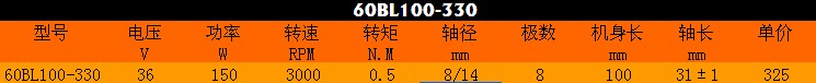 60BL100-330無刷直流電機(jī)基本參數(shù):
