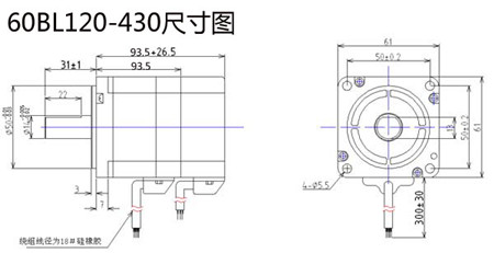 60BL120-430無(wú)刷直流電動(dòng)尺寸圖: