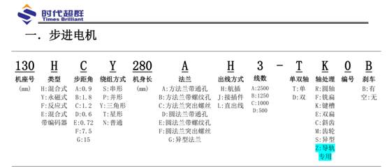 說明: 1、步進電機命名規(guī)則實施后,型號中將不再用括號標(biāo)注;線數(shù)為有效出線數(shù),線數(shù)為具體數(shù)字的時候表示具體出線數(shù),為字母時表示編碼器線數(shù),不計空線,如 39-26 電機線數(shù)應(yīng)該為 4; 2、任意一款電機做了細微改動后,如果命名規(guī)則無法體現(xiàn)則用不同編號表示,編號為數(shù)字的是通用產(chǎn)品,為字母或字母+數(shù)字的為定制產(chǎn)品。 3、軸處理 C 的為專門用于外接齒輪減速,軸處理 M 的專門用于外接 PL 行星減速;雙出軸電機軸處理的命名以前面出軸為準(zhǔn) 4、新增帶編碼器電機(即帶反饋功能) 型號舉例:60EBP84ALC-TF0 舉例: 原 57BYG250-56(4 線,軸徑 6.35)改為 57HBP56AL4-TF0; 產(chǎn)品新型號名稱: