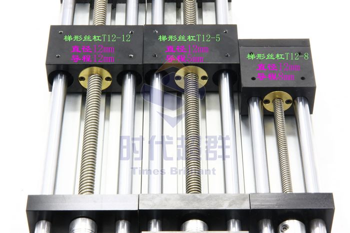 (1)梯型絲杠 直徑8mm 導(dǎo)程8mm (2)梯形絲杠T12-5 絲杠直徑12mm 導(dǎo)程5mm (3)梯形絲杠T12-12 絲杠直徑12mm 導(dǎo)程12mm