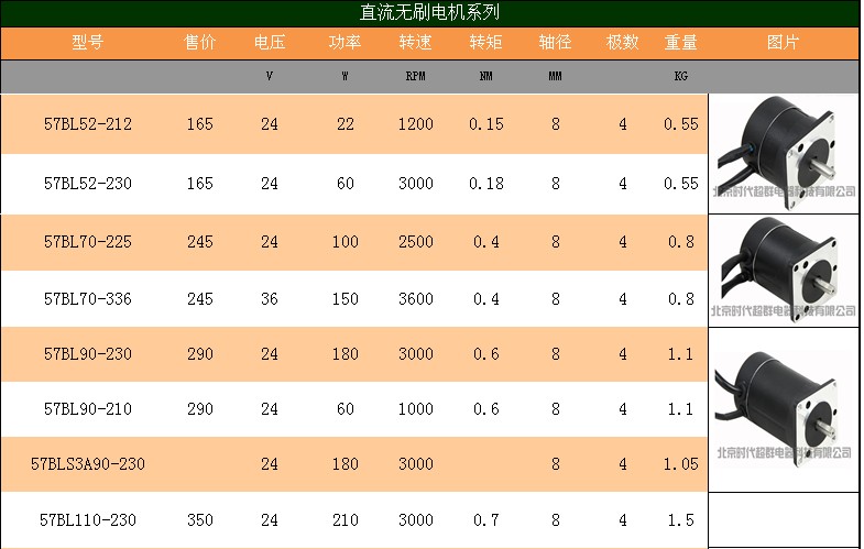 ZD-6405無刷控制器可控制57BL系列無刷電機: