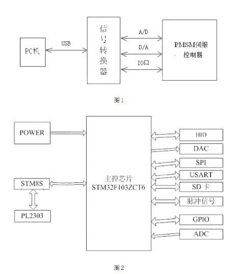 PMSM 伺服控制器,其中,PC 機(jī)通過(guò)信號(hào)轉(zhuǎn)換器與PMSM 伺服控制器連接,信號(hào)轉(zhuǎn)換器用于在