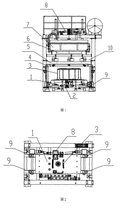 [0011] 其中:1-下模具臺(tái)、2-下模具電機(jī)驅(qū)動(dòng)機(jī)構(gòu)、3-成型模、4-下壓框升降機(jī)構(gòu)、5-下