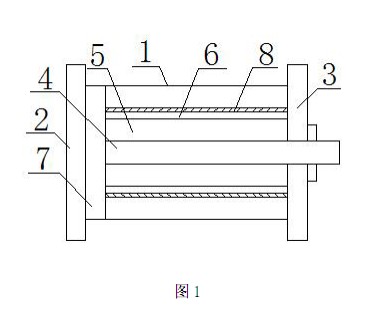 [0010] 圖中1. 機殼,2. 底蓋,3. 端蓋,4. 轉(zhuǎn)軸,5. 轉(zhuǎn)子,6. 導(dǎo)磁圓筒,7. 隔熱層,8. 散熱